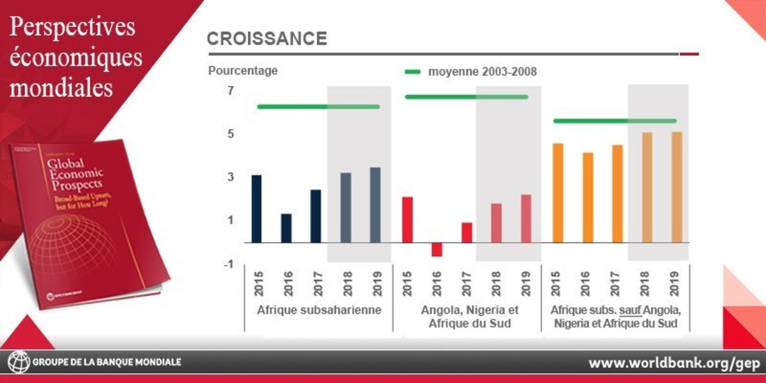 La Banque mondiale vient de publier ses “Perspectives économiques mondiales », elle y prévoit un retour à la croissance pour l’Afrique subsaharienne. Si en 2016, un recul de 1,3 % avait été enregistré, la croissance est repartie avec un rebond de 2,4 % en 2017 et devrait se poursuivre jusqu’à atteindre 3,2% , si l’on en croit les perspectives dévoilées par dernières analyses