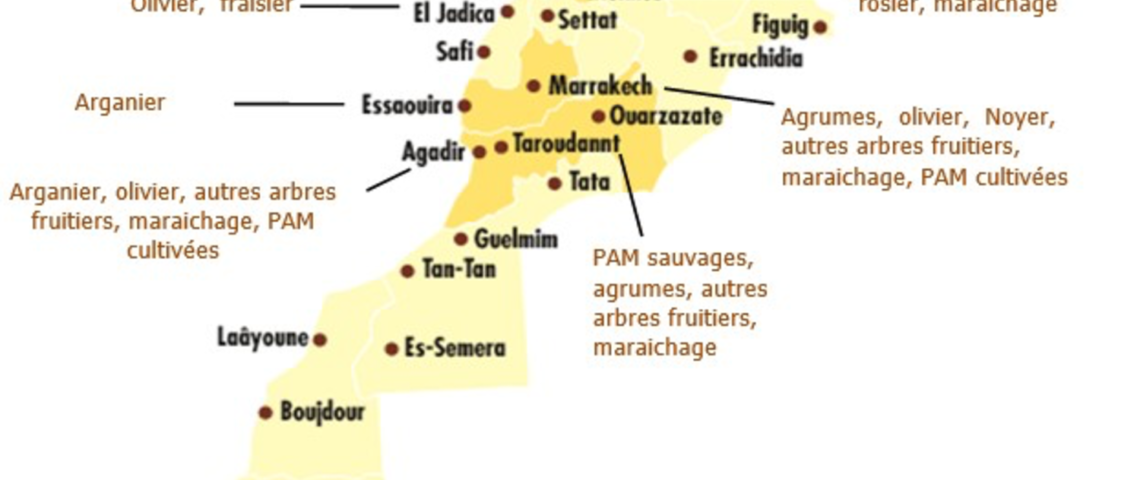 - 165.000 ha en plantes spontanées (représentées essentiellement par la forêt, de l’arganier, des plantes aromatiques et médicinales).